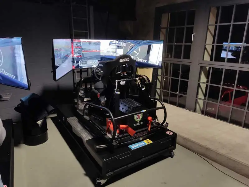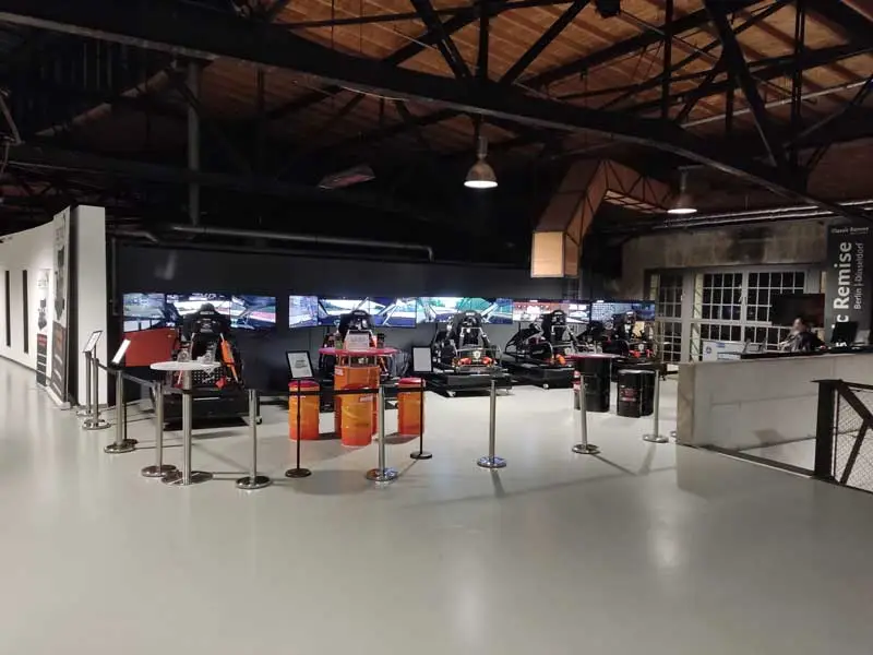 Der Sim Racing Simulator in der Classic Remise wird vom Sim Racing Center Düsseldorf betrieben. Insgesamt stehen dort fünf Simulatoren des Typs Actoracer bereit, ein System des Herstellers Simulationstechnik Lingnau GmbH. Das Konzept klingt ambitioniert, über 120 laservermessene Strecken, mehr als 300 Fahrzeuge zur Auswahl und physische Rückmeldungen, die Beschleunigung, Bremsen und Streckenbeschaffenheit direkt spürbar machen. Als Basis dient Assetto Corsa, eine der realistischsten Rennsimulationen die es gibt.